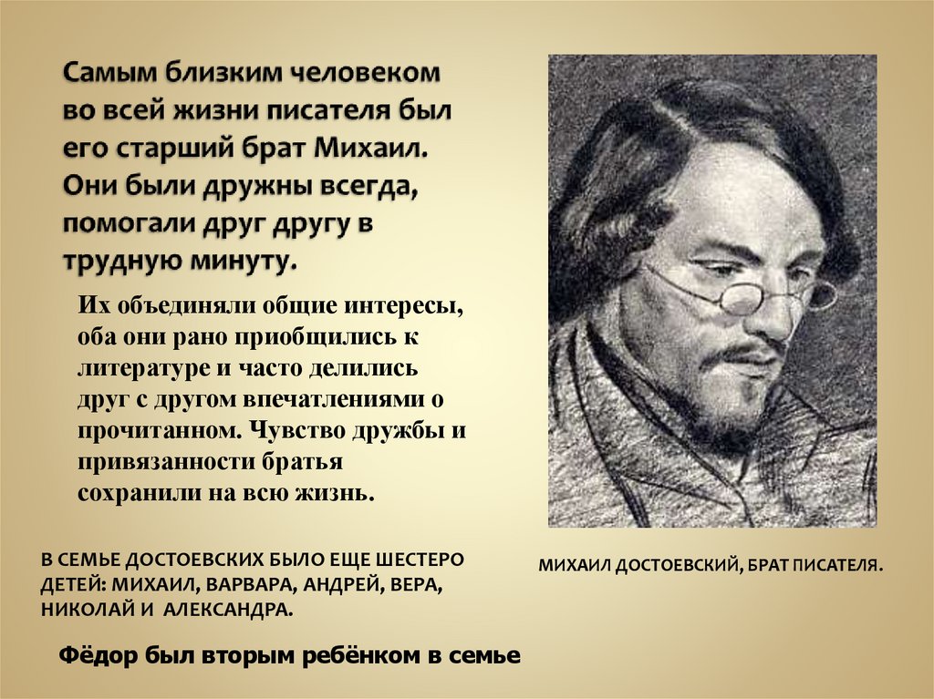В СЕМЬЕ ДОСТОЕВСКИХ БЫЛО ЕЩЕ ШЕСТЕРО