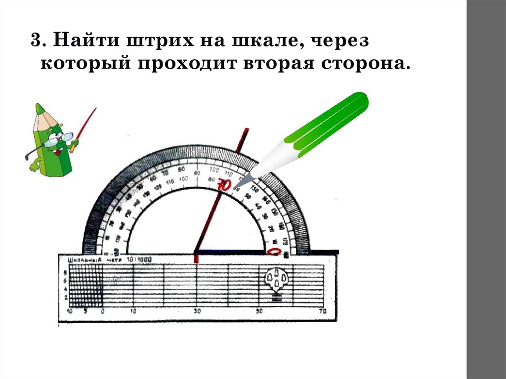 3. Найти штрих на шкале, черезкоторый проходит вторая сторона.