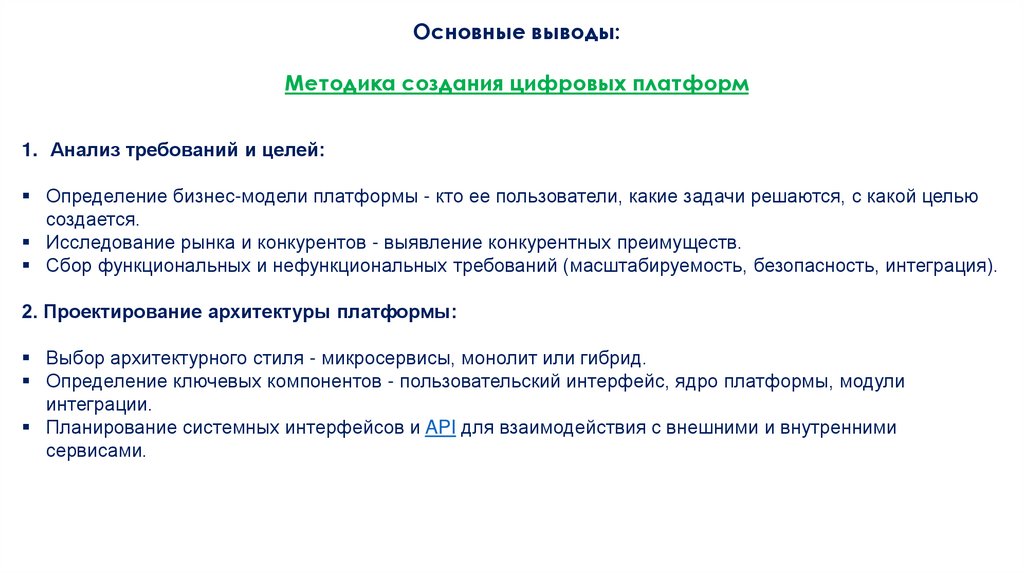 Основные выводы:«Плоха та платформа которая не мечтает стать экосистемой»
