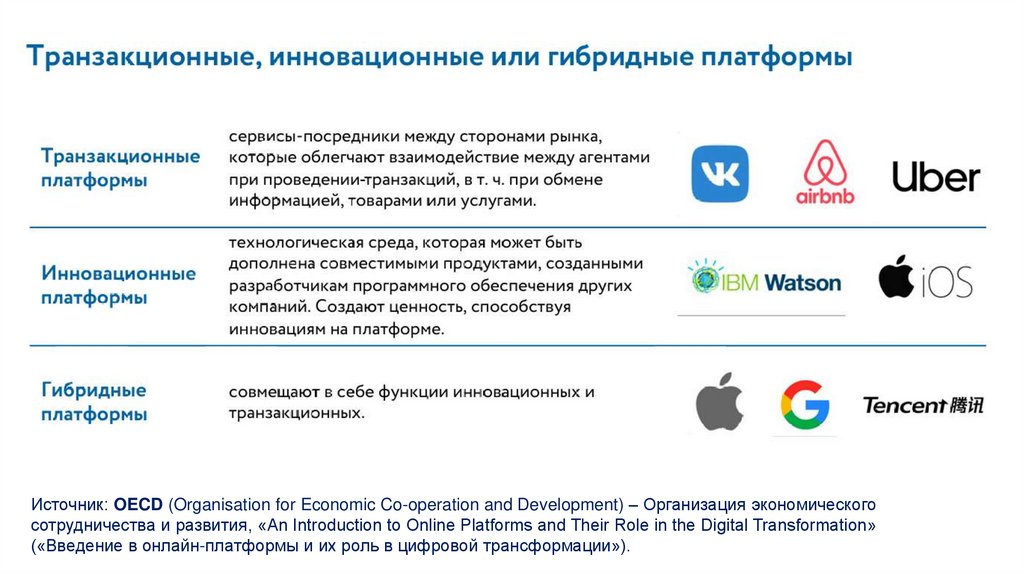 Источник: OECD (Organisation for Economic Co-operation and Development) – Организация экономическогосотрудничества и развития, «An Introduction to Online Platforms and Their Role in the Digital Transformation»