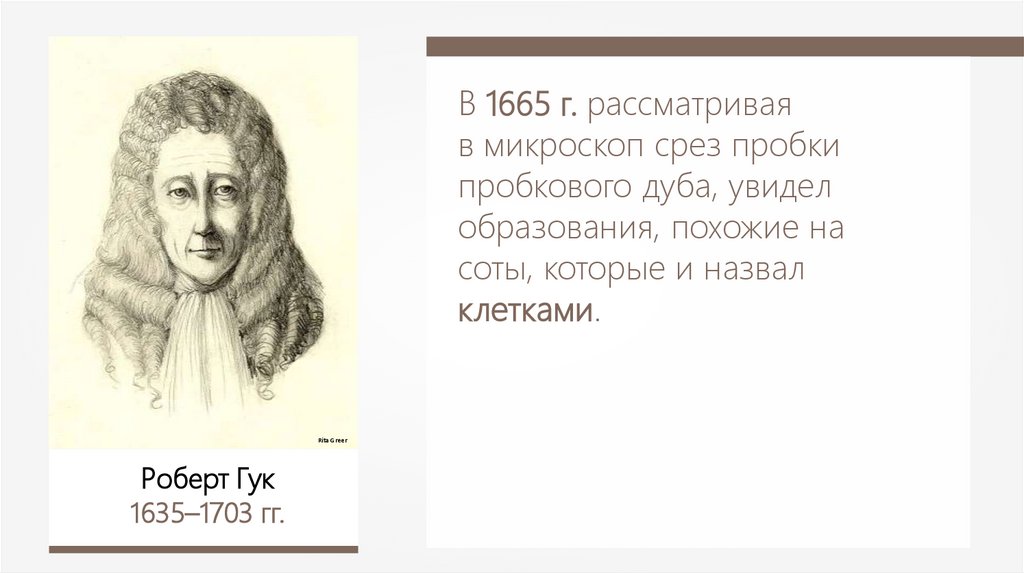 В 1665 г. рассматриваяв микроскоп срез пробки