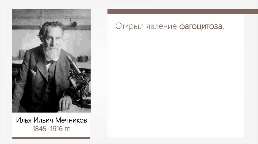 Открыл явление фагоцитоза.Илья Ильич Мечников