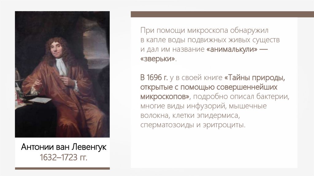микроскопов», подробно описал бактерии,