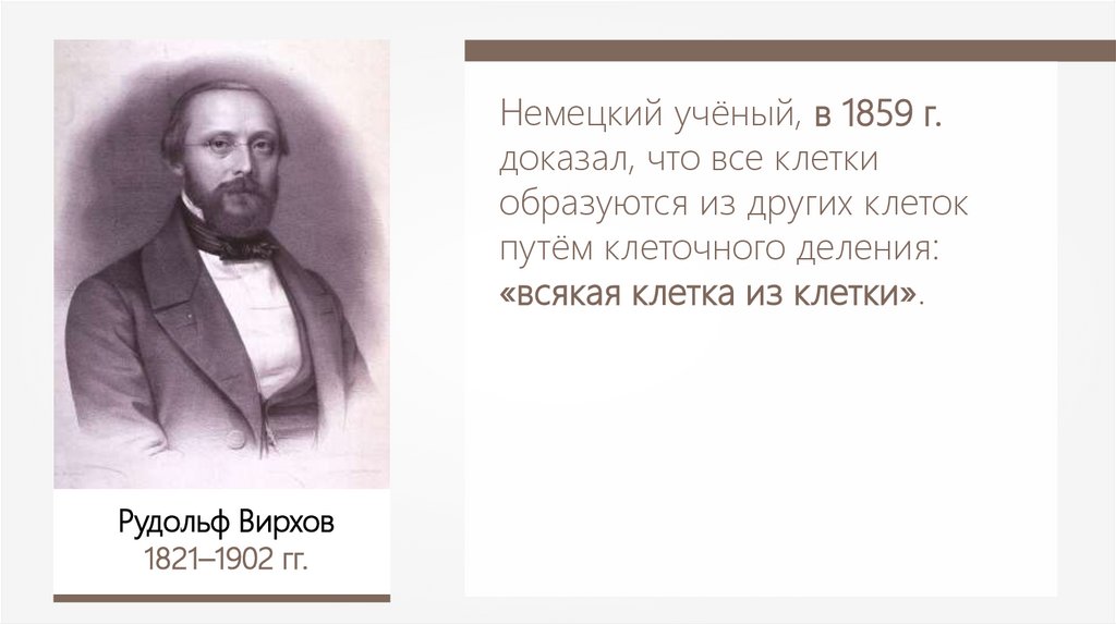 Немецкий учёный, в 1859 г.доказал, что все клетки
