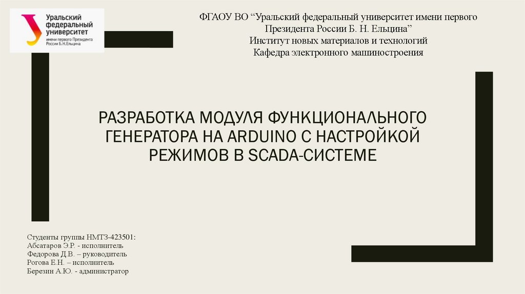 ФГАОУ ВО “Уральский федеральный университет имени первогоПрезидента России Б. Н. Ельцина”