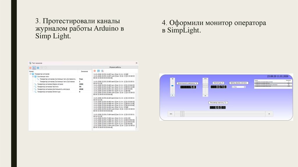 3. Протестировали каналыжурналом работы Arduino в