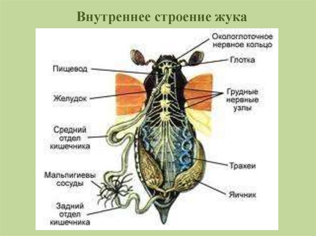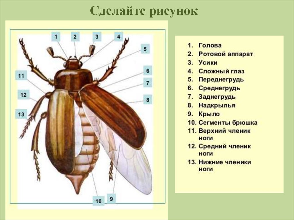 Какие органы расположены в грудном отделе?12. Рассмотрите крылья жука