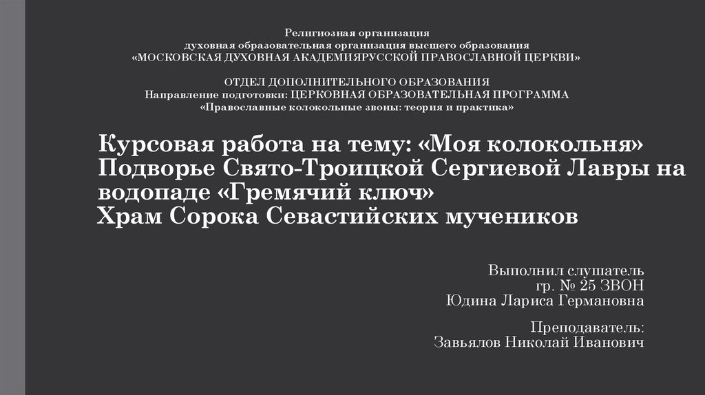 1. Курсовая работа на тему: «Моя колокольня» Подворье Свято-Троицкой Сергиевой Лавры на водопаде «Гремячий ключ» Храм Сорока