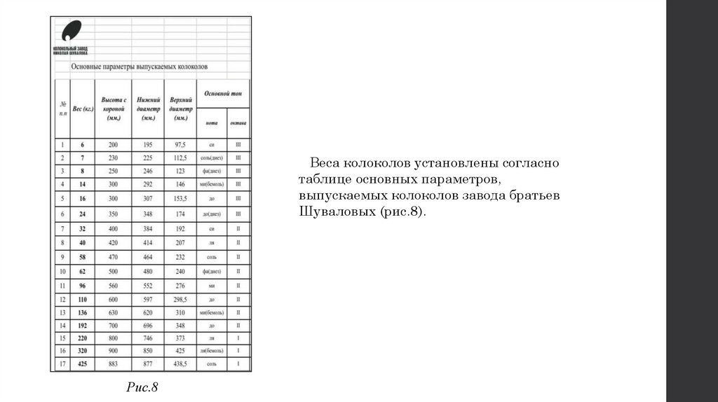 Основными ударными тонами колоколов являются: ля бемоль второй октавы, ми