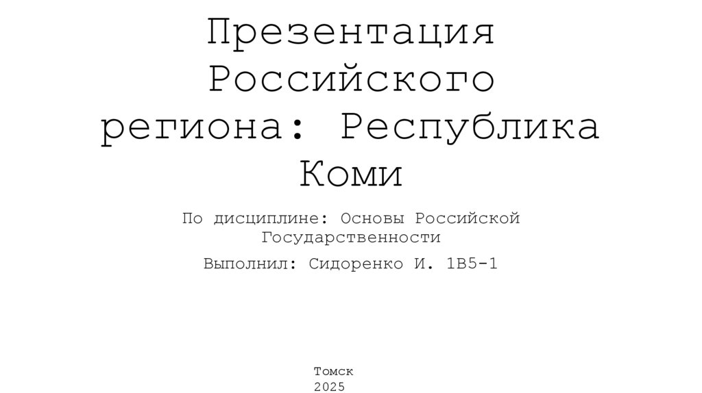 1. Презентация Российского региона: Республика Коми