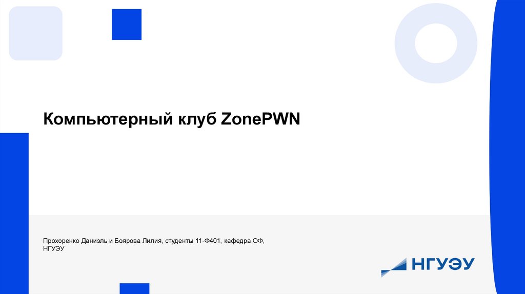 Компьютерный клуб ZonePWNПрохоренко Даниэль и Боярова Лилия, студенты 11-Ф401, кафедра ОФ,