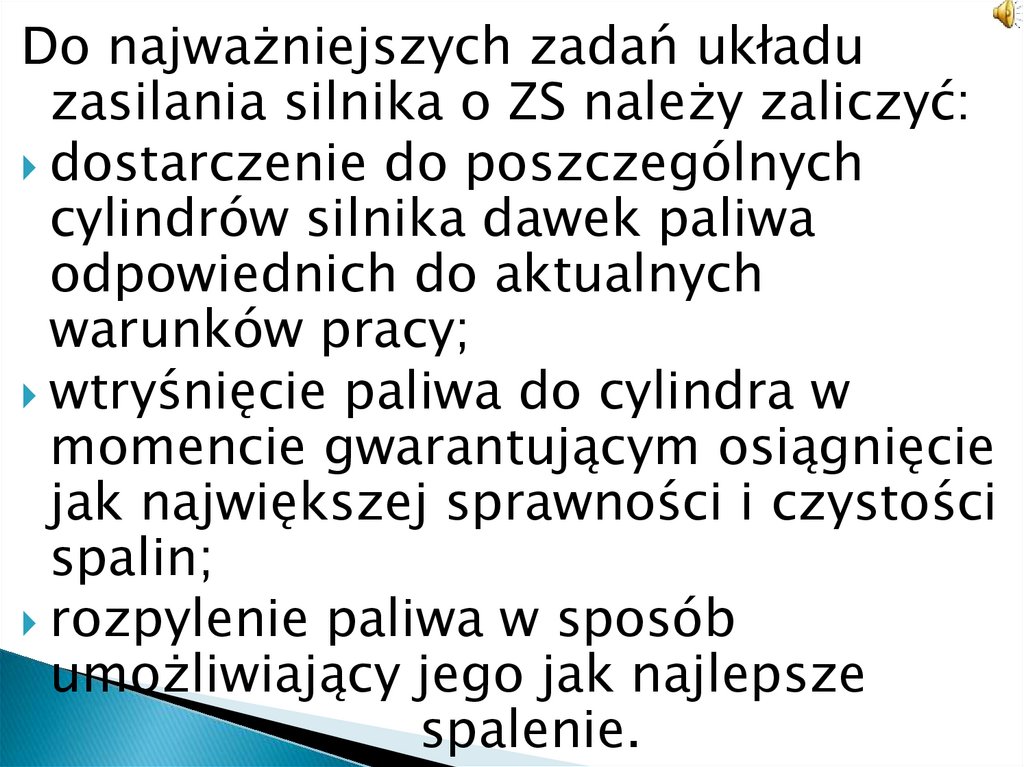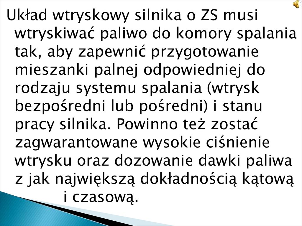 Do najważniejszych zadań układuzasilania silnika o ZS należy zaliczyć: