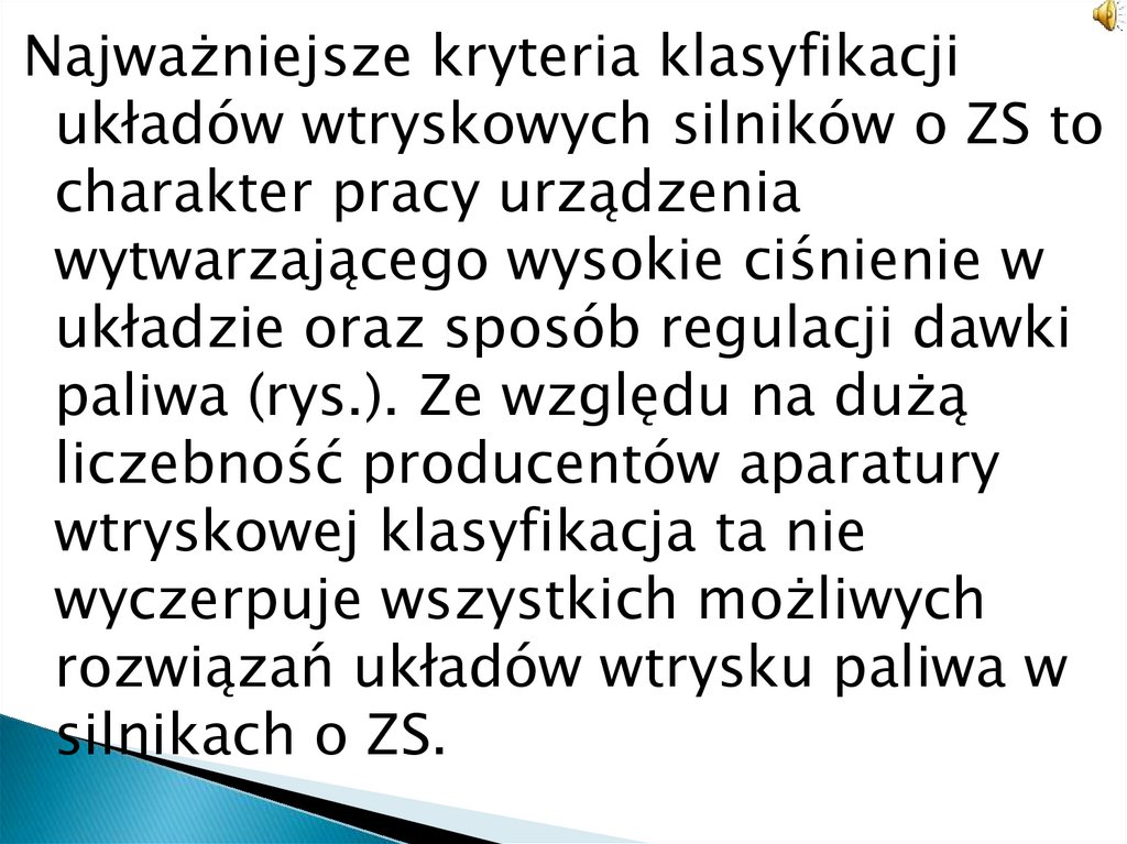 Najważniejsze kryteria klasyfikacjiukładów wtryskowych silników o ZS to