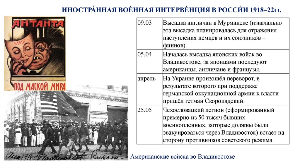 Весной 1918 года страны Антанты высадили вооружённые десанты
