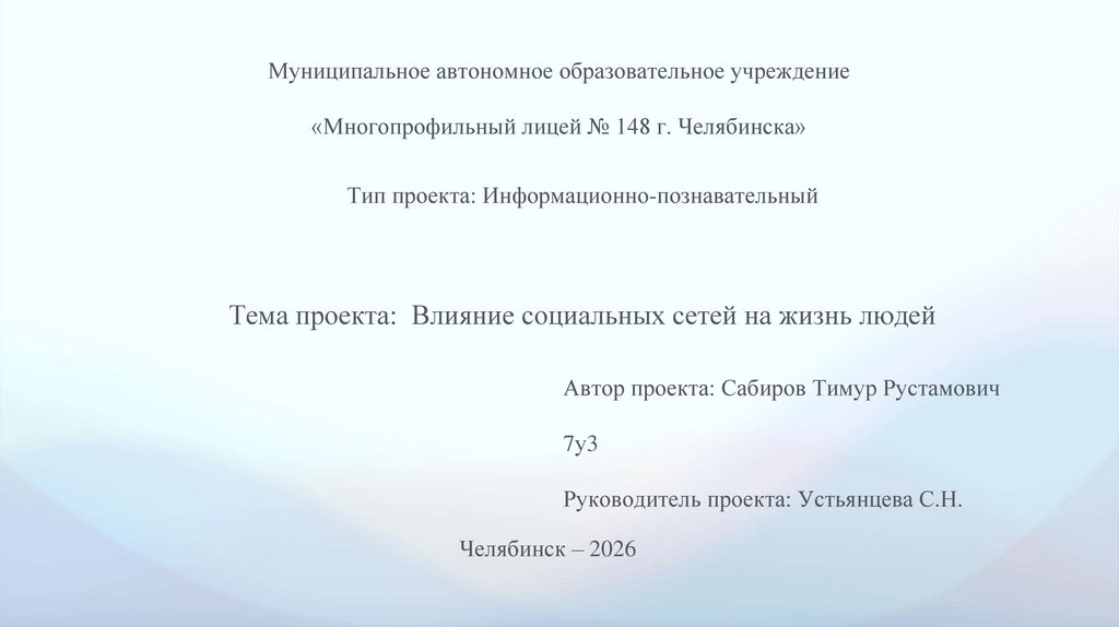 Муниципальное автономное образовательное учреждение«Многопрофильный лицей № 148 г. Челябинска»