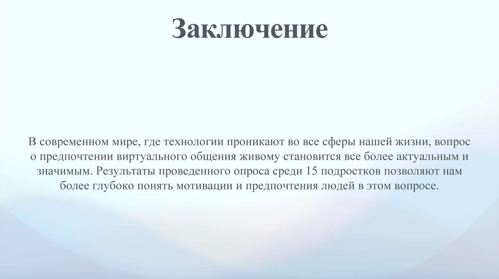 ЗаключениеВ современном мире, где технологии проникают во все сферы нашей жизни, вопрос