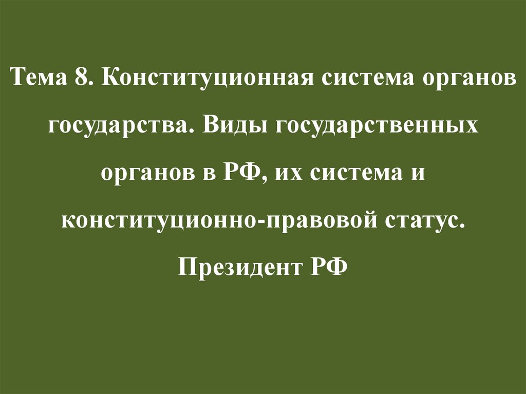 Тема 8. Конституционная система органов государства. Виды государственных органов в РФ, их система и конституционно-правовой статус. През