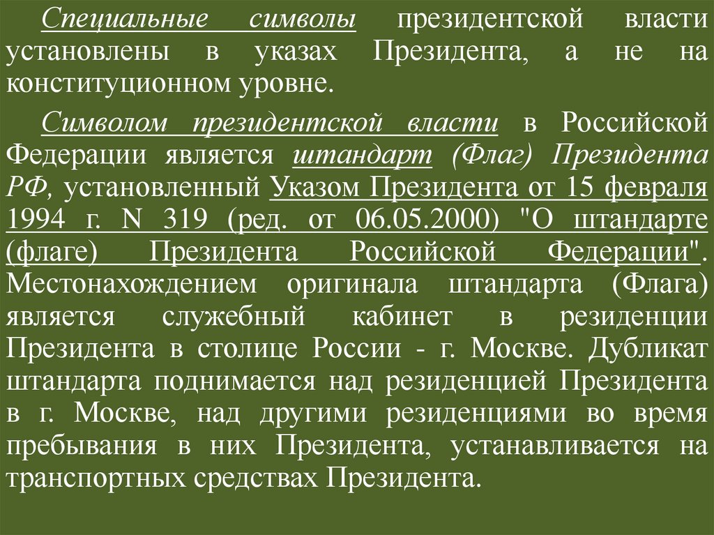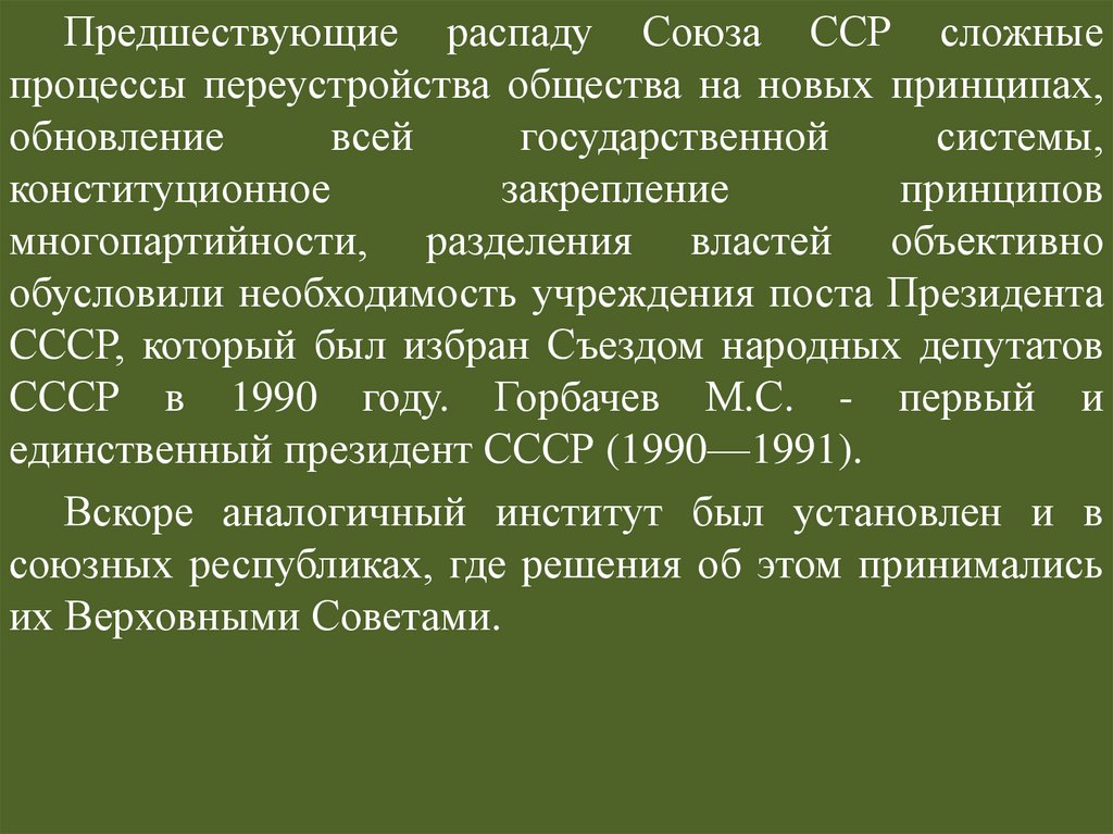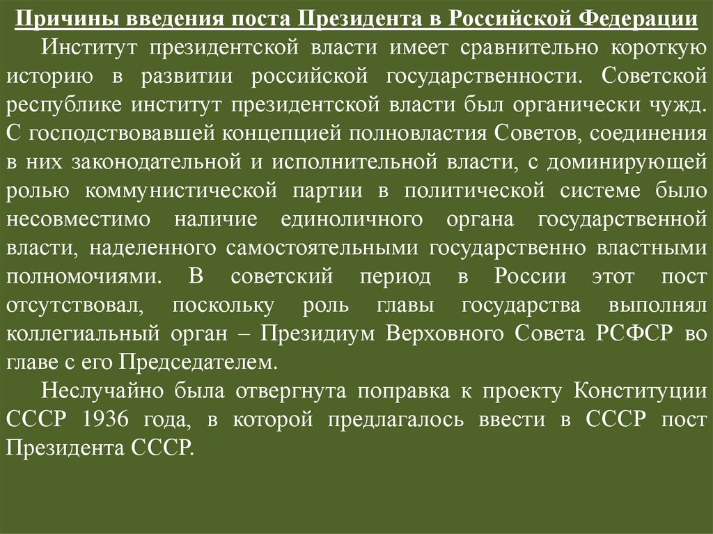 обусловили необходимость учреждения поста Президента