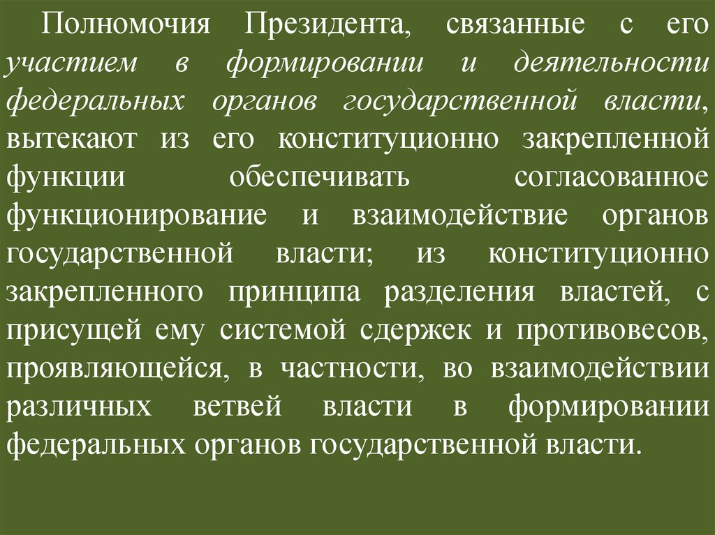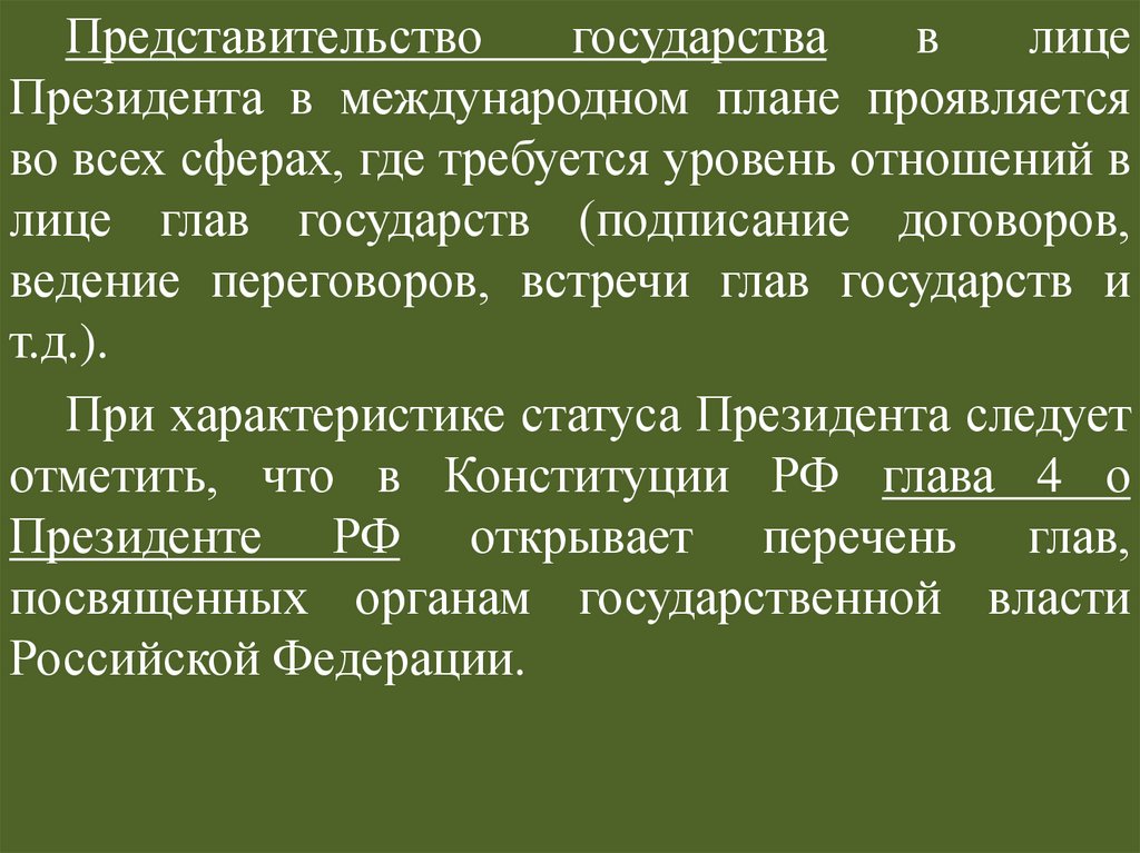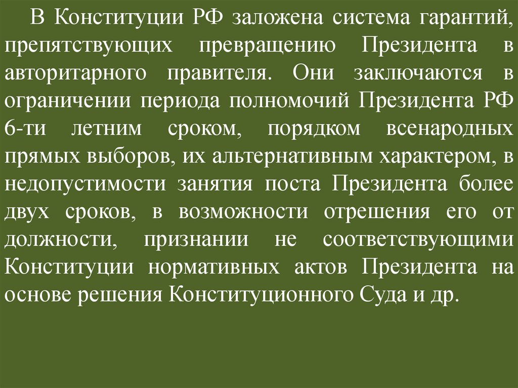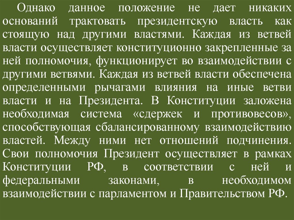 принцип разделения властей, глава о Президенте;