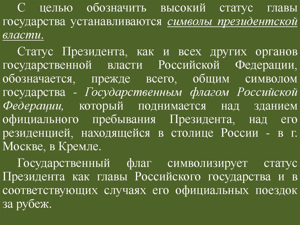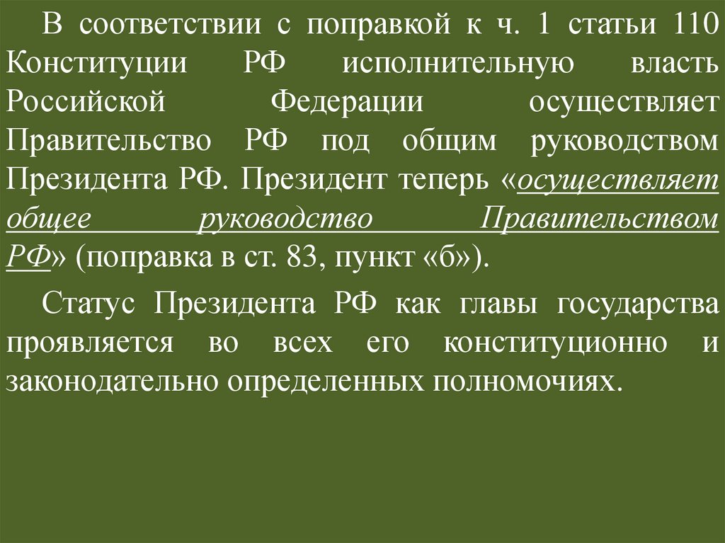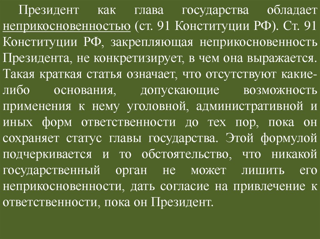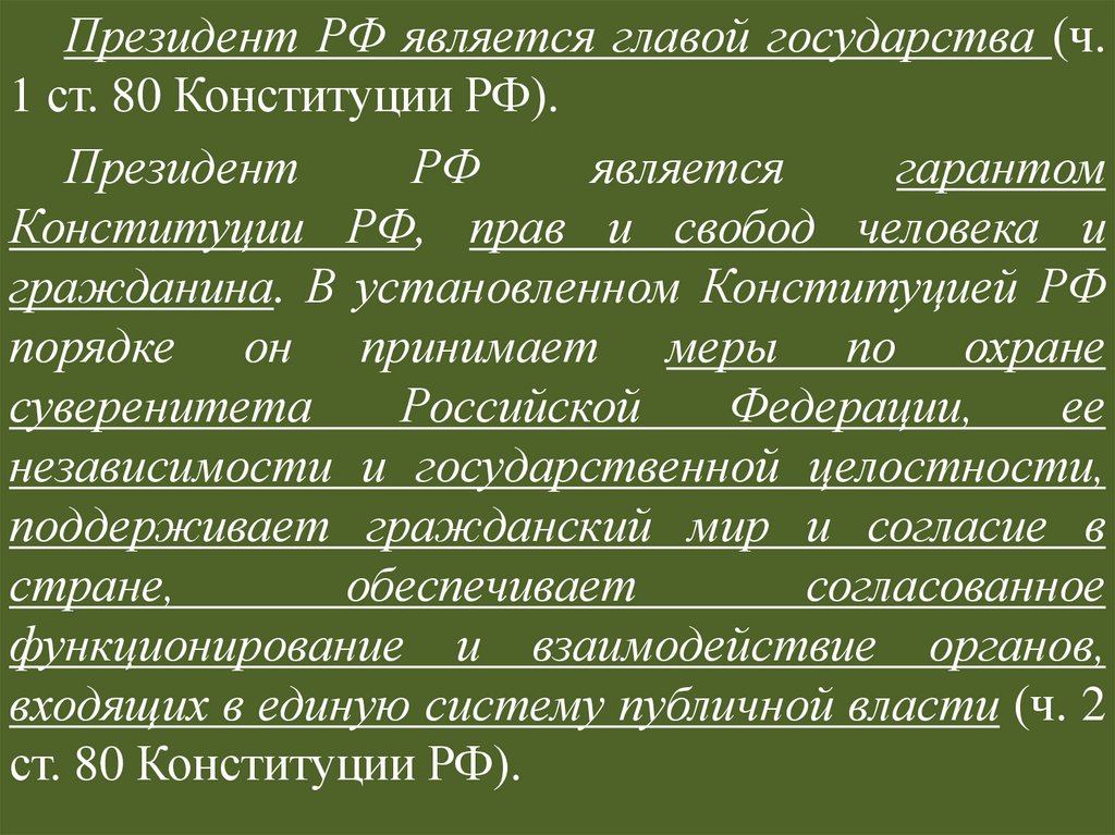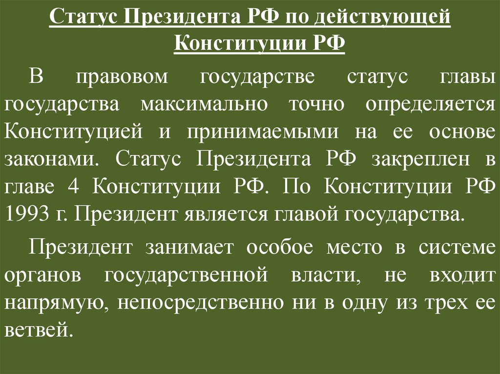 Статус Президента РФ по действующейКонституции РФ