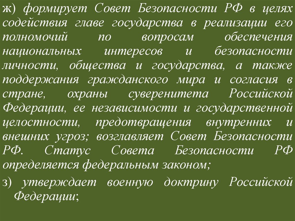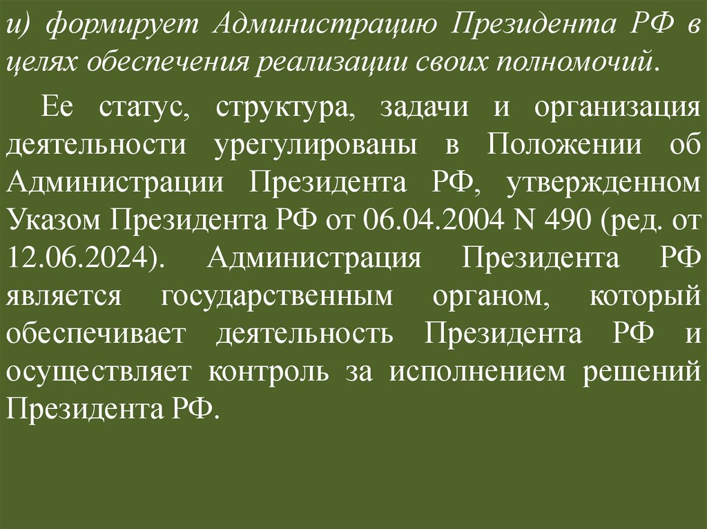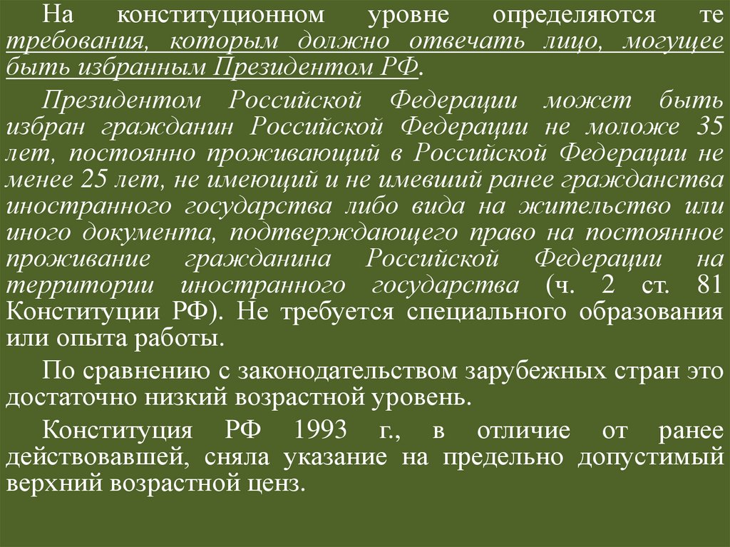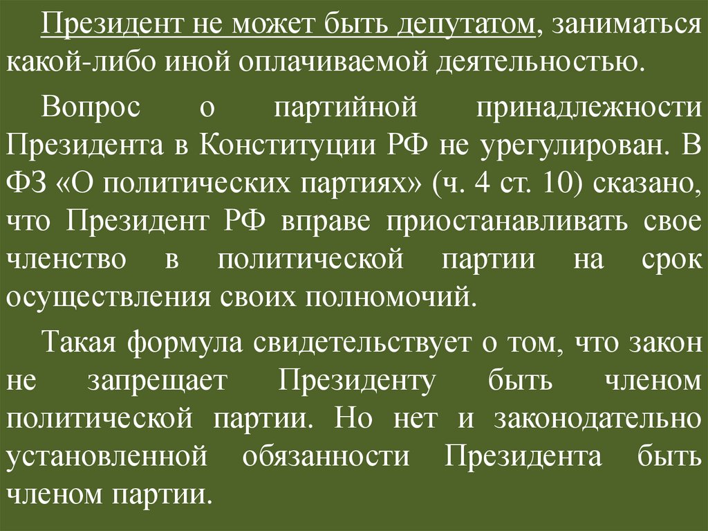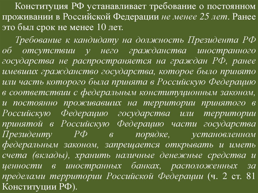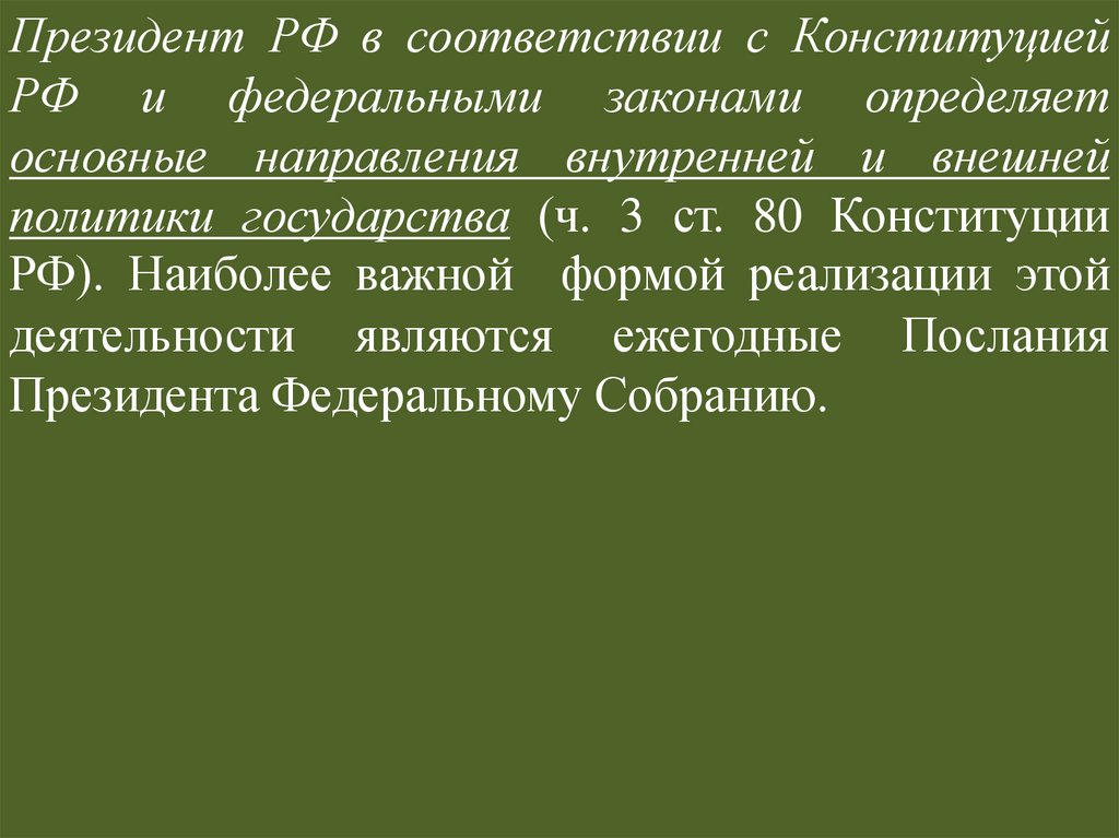 Статус Президента РФ по действующейКонституции РФ