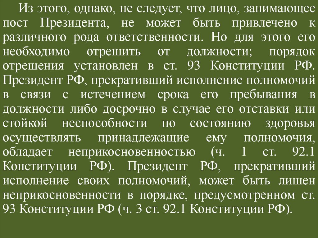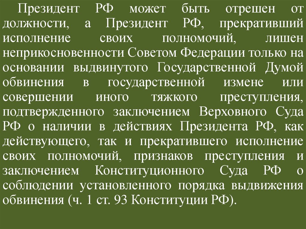 Президент РФ может быть отрешен отдолжности, а Президент РФ, прекративший