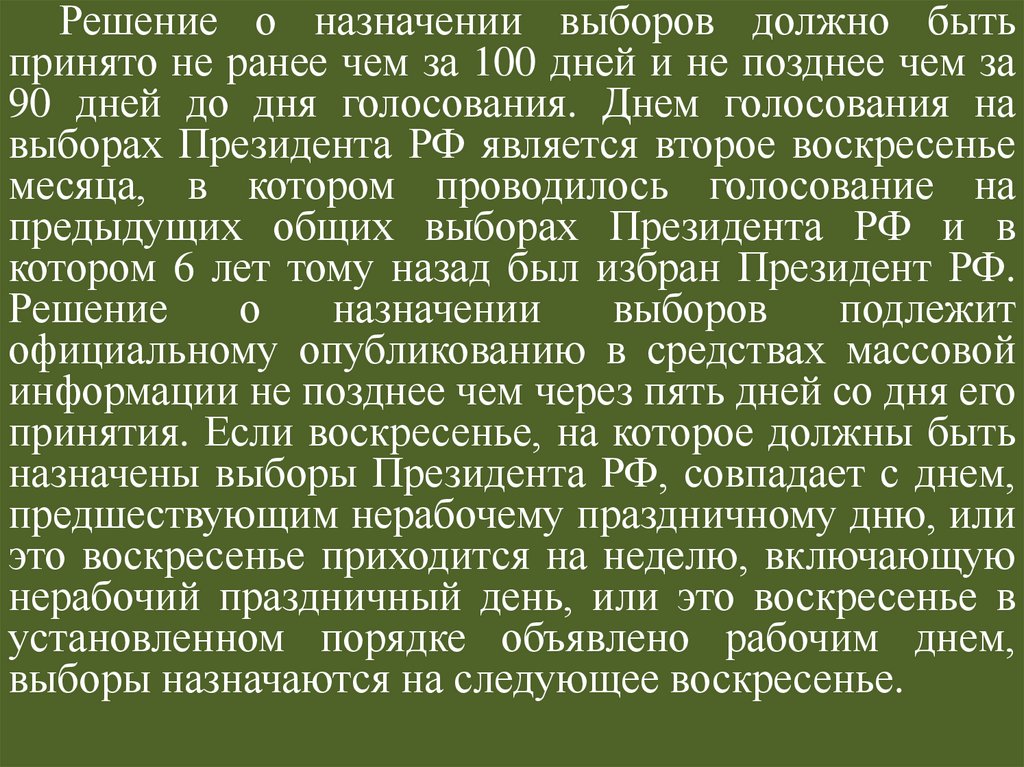 При этом выборы Президента РФ должнысостояться не позднее 3-х месяцев с момента