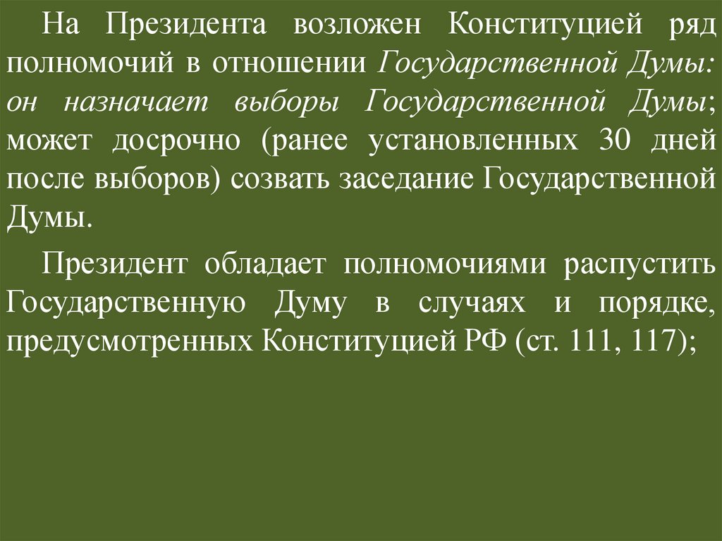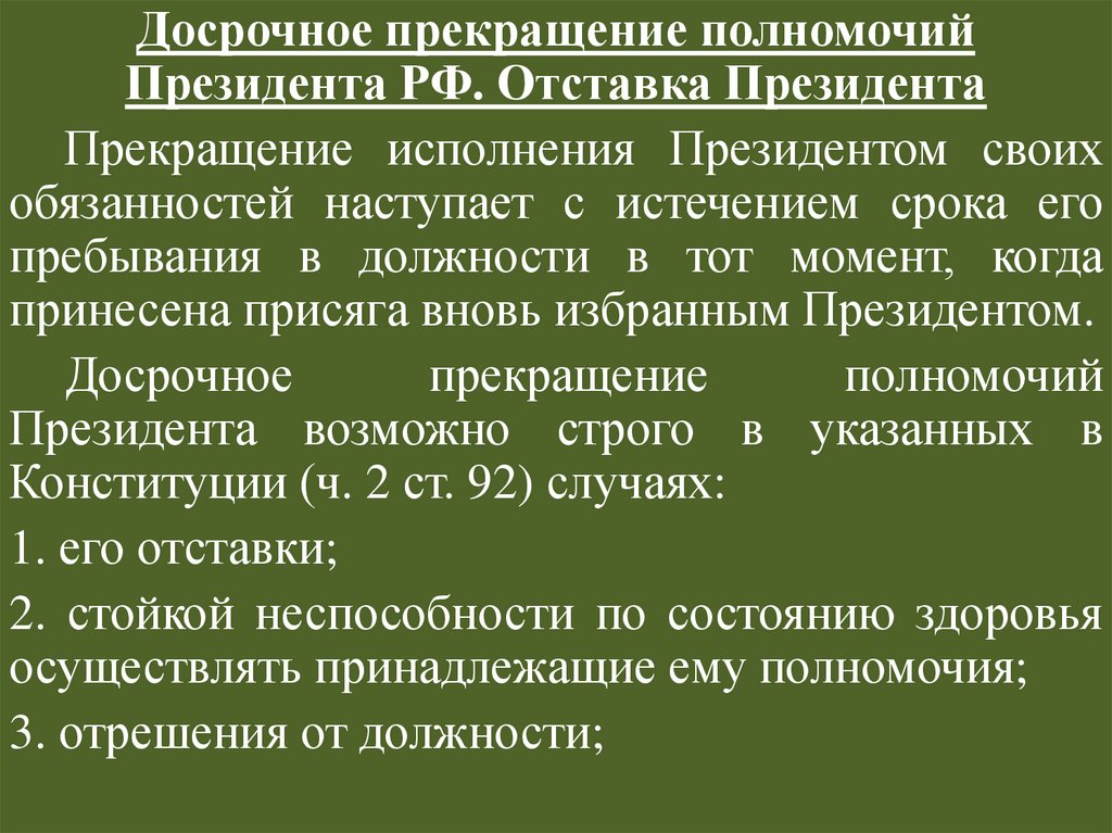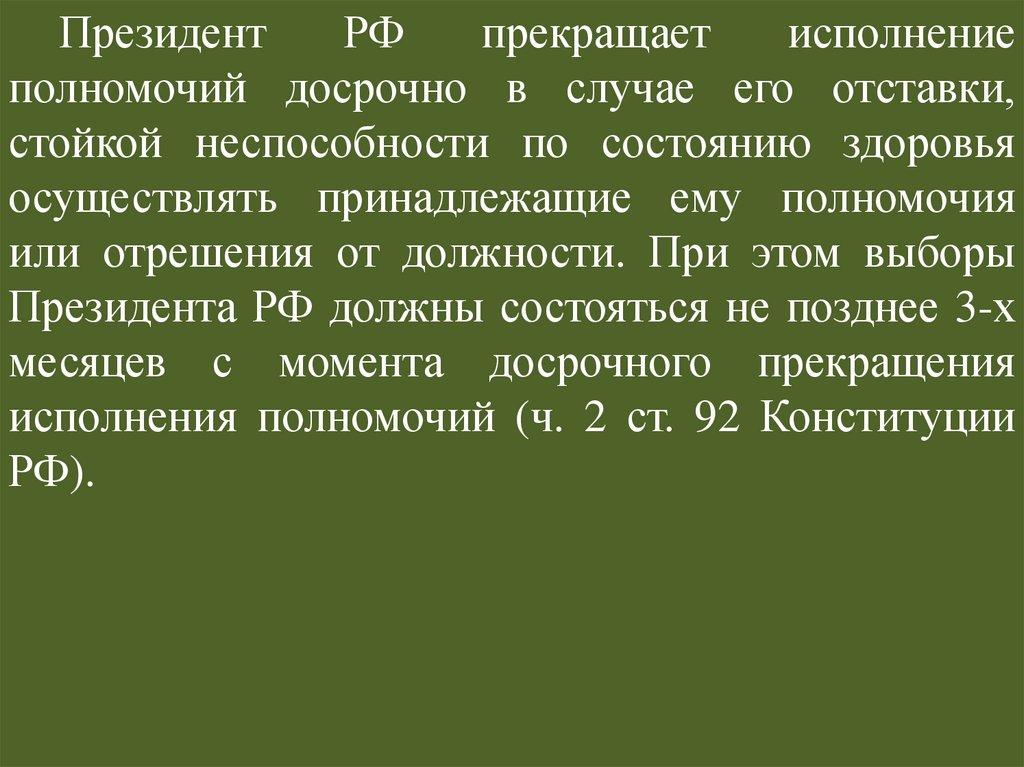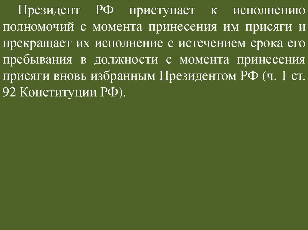 (ч. 2 ст. 92 Конституции РФ).