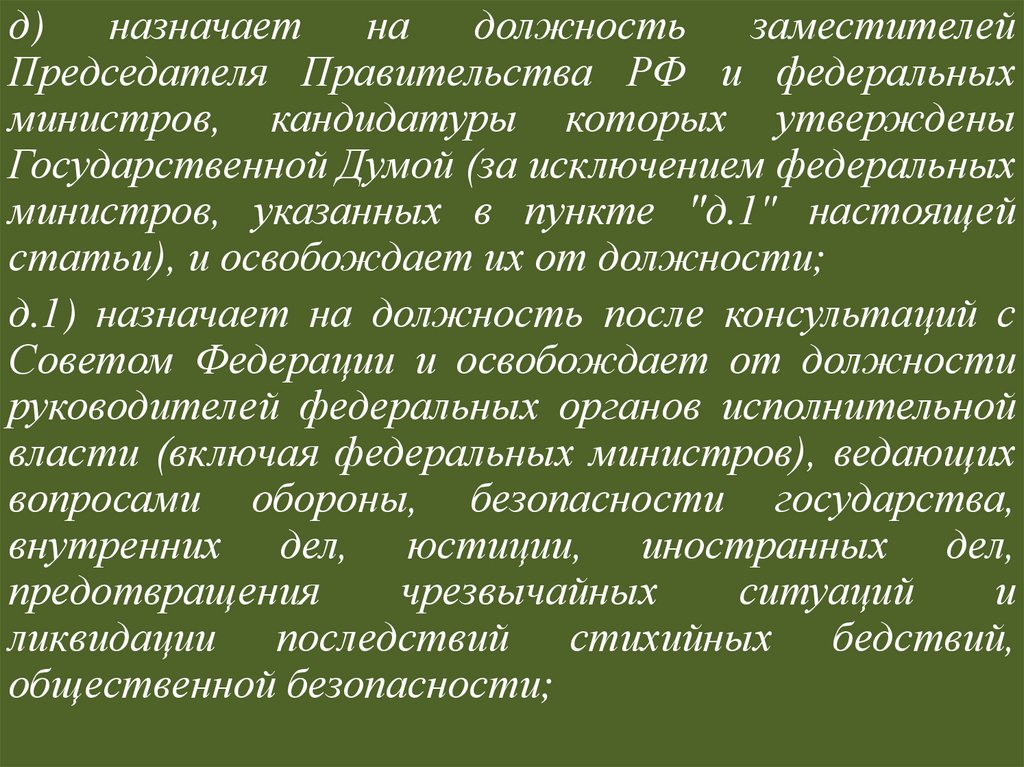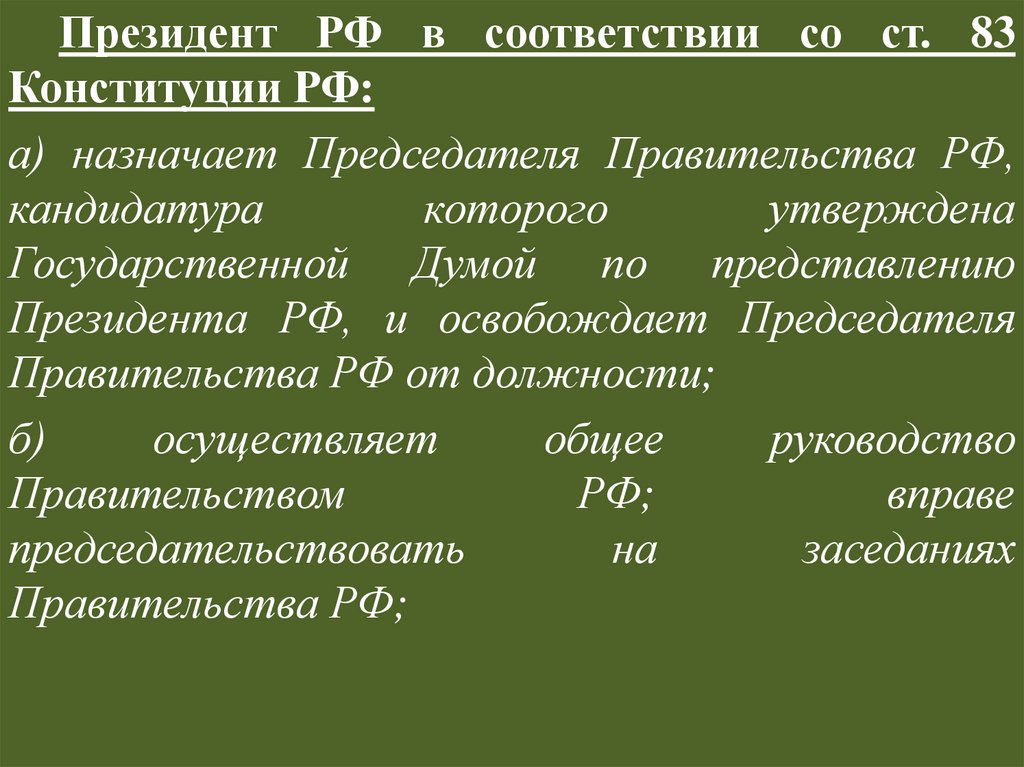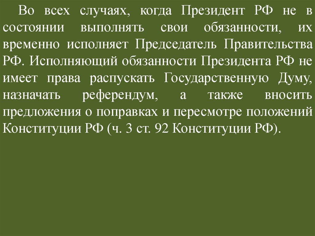 Во всех случаях, когда Президент РФ не в