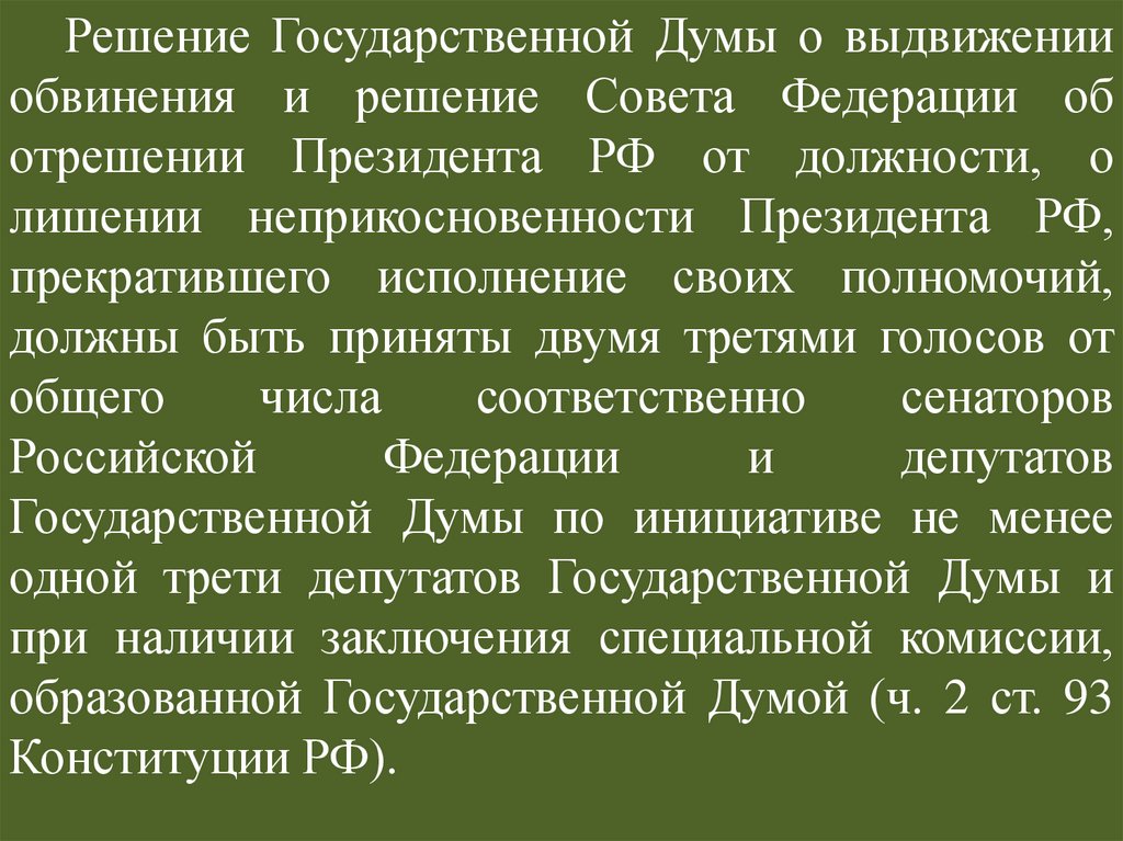 Решение Государственной Думы о выдвиженииобвинения и решение Совета Федерации об