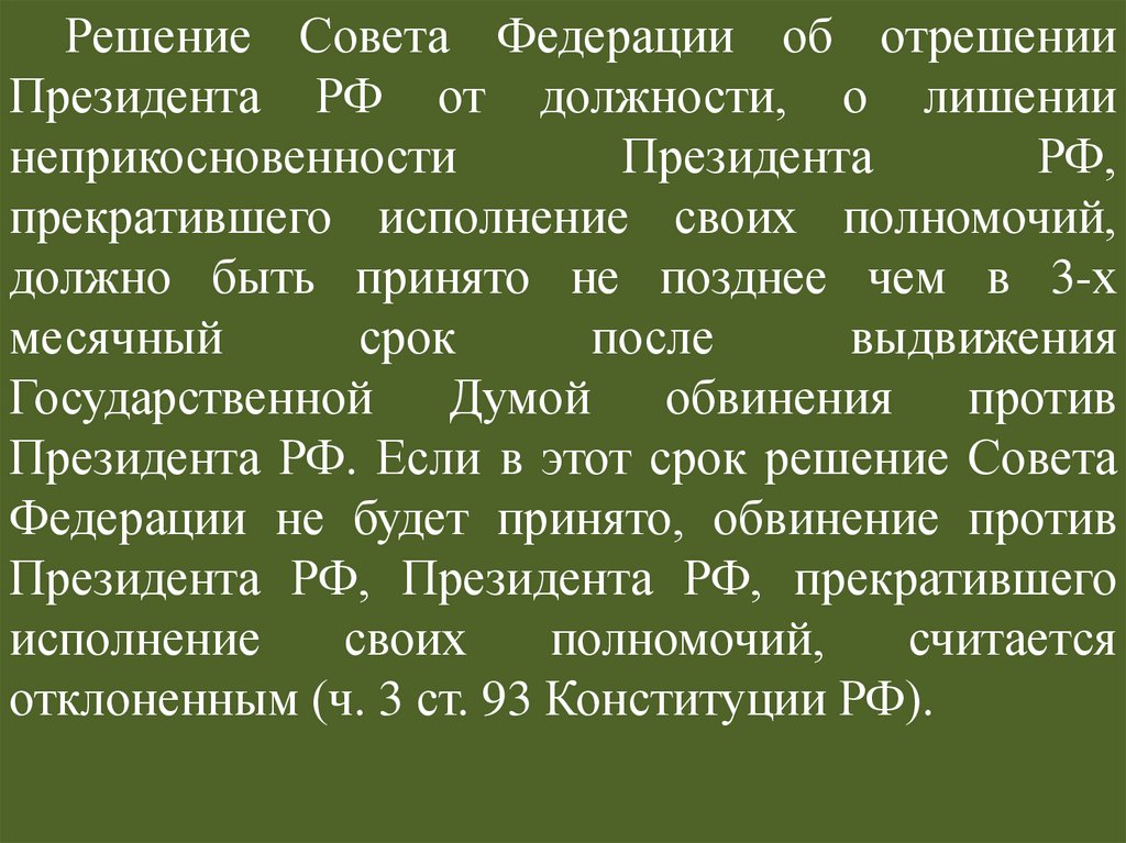 Решение Совета Федерации об отрешенииПрезидента РФ от должности, о лишении