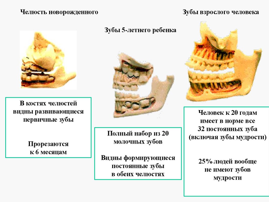 Челюсть новорожденногоЗубы взрослого человека