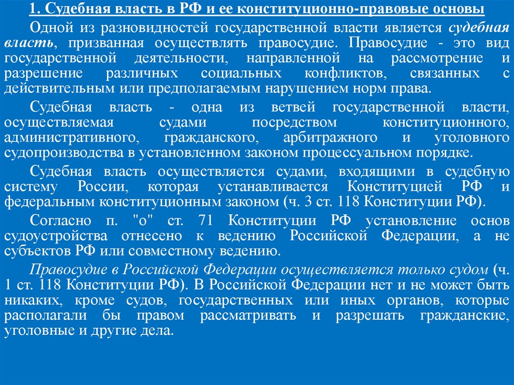 1 ст. 118 Конституции РФ). В Российской Федерации нет и не может быть