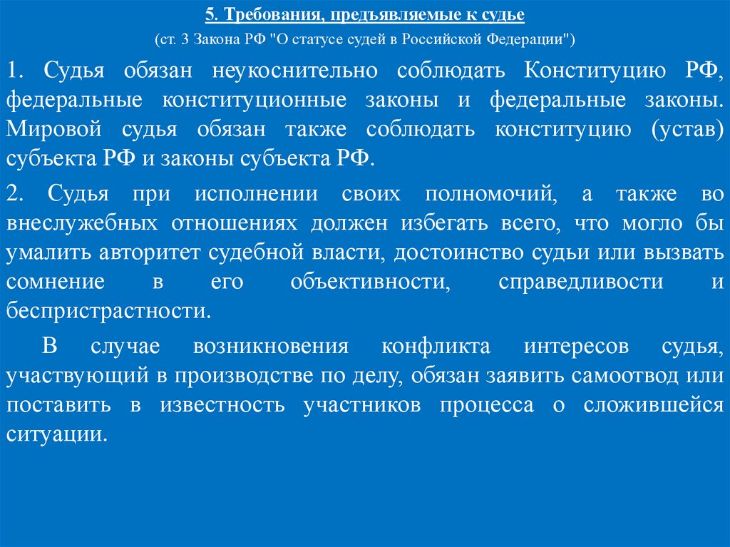 Самые общие требования к судьям сформулированы в ст. 119
