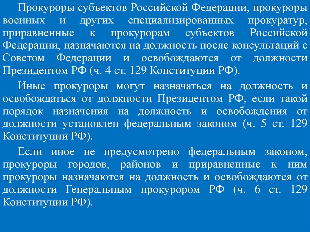 Прокуроры субъектов Российской Федерации, прокурорывоенных и других специализированных прокуратур,