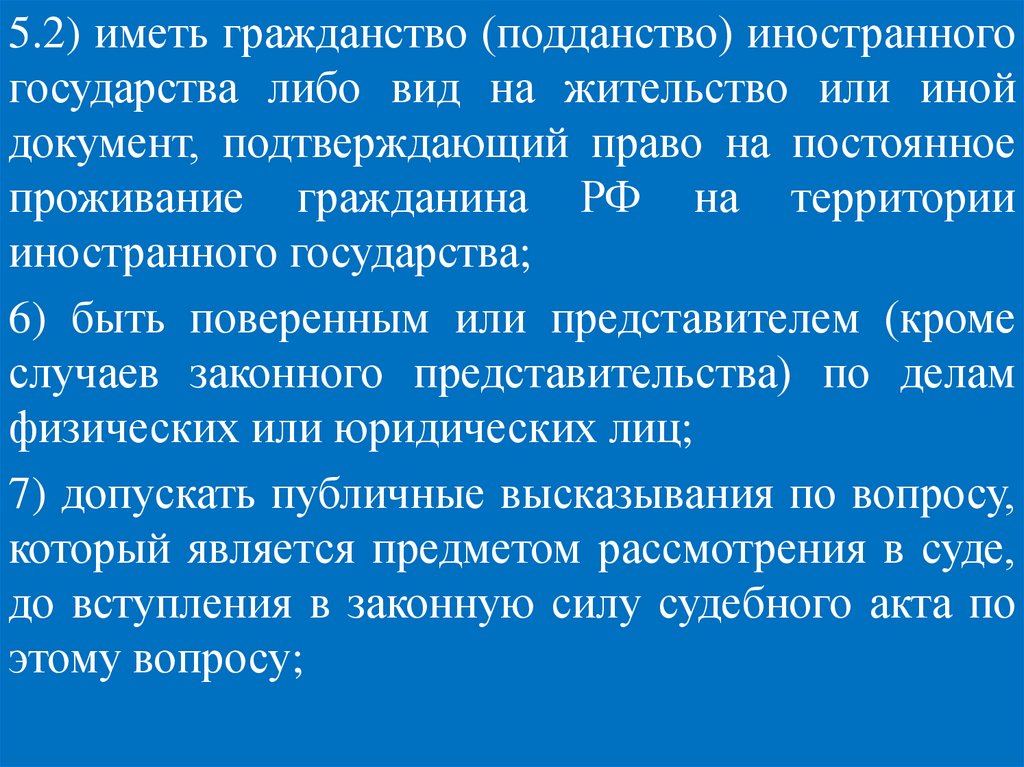юридической профессии не менее 5-ти лет, постоянно проживающие в