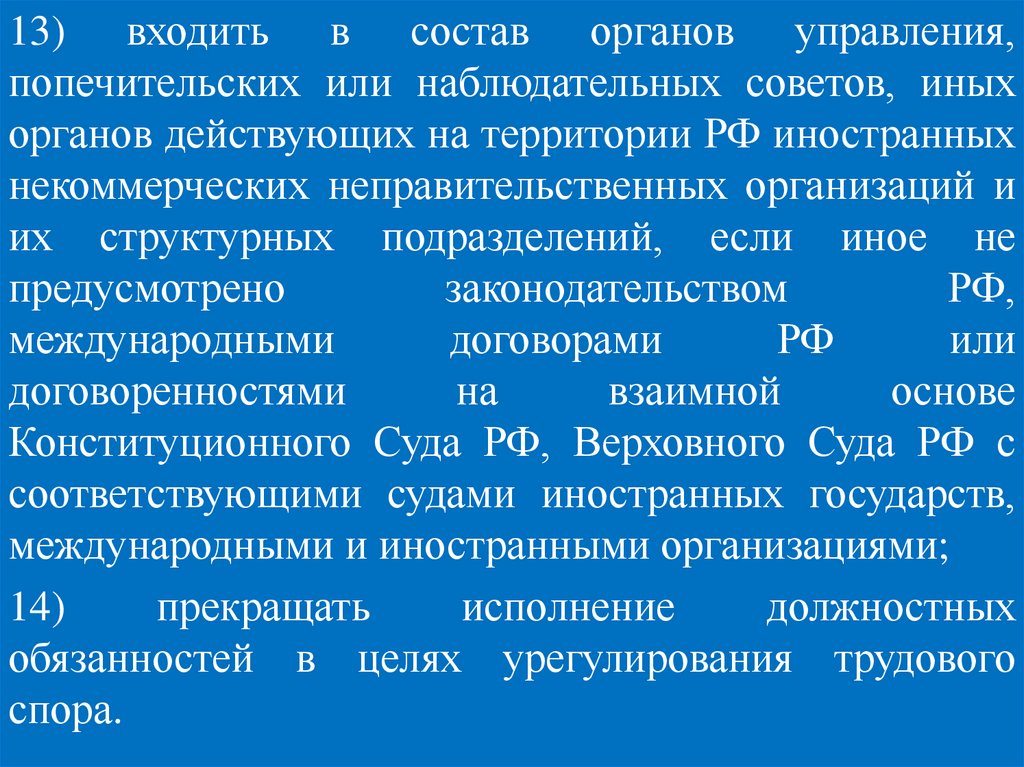 Создание и деятельность на территории Российской Федерации органов