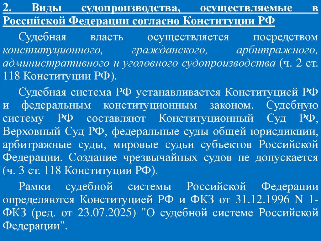 определяются Конституцией РФ и ФКЗ от 31.12.1996 N 1ФКЗ (ред. от 23.07.2025) "О судебной системе Российской