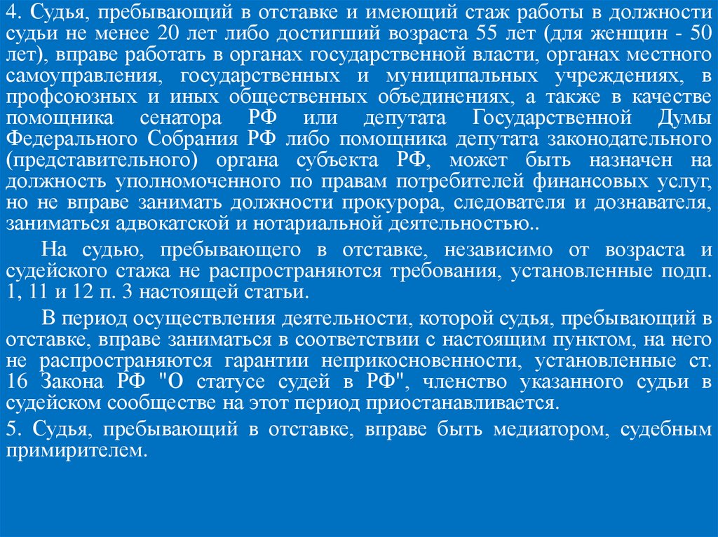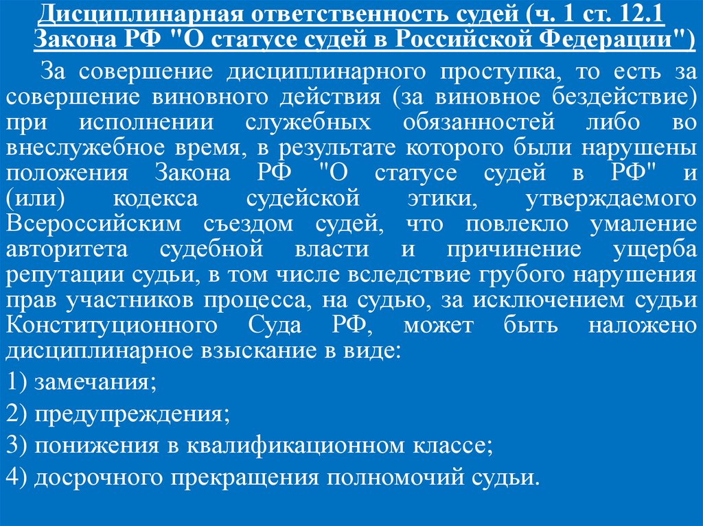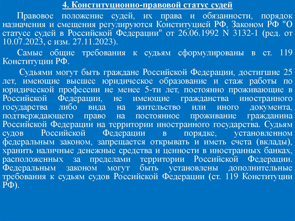 4. Конституционно-правовой статус судейПравовое положение судей, их права и обязанности, порядок