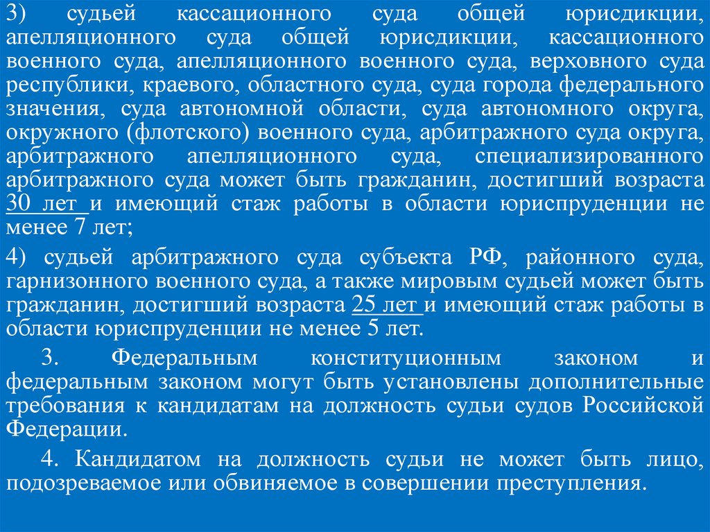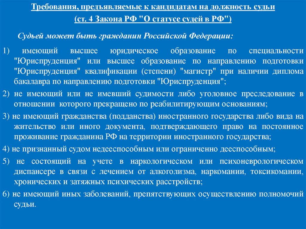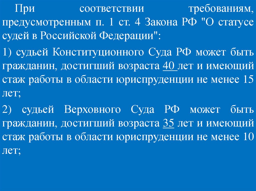 Судьями могут быть граждане Российской Федерации, достигшие 25