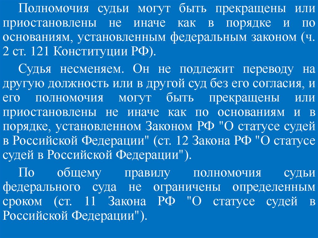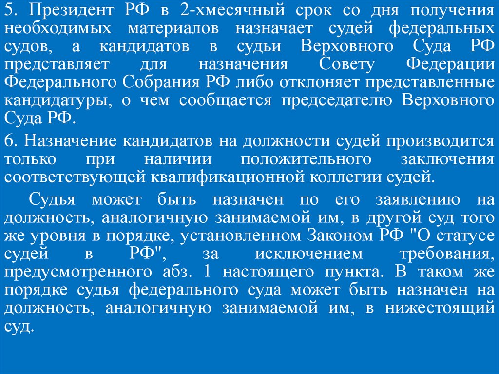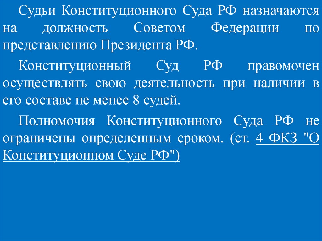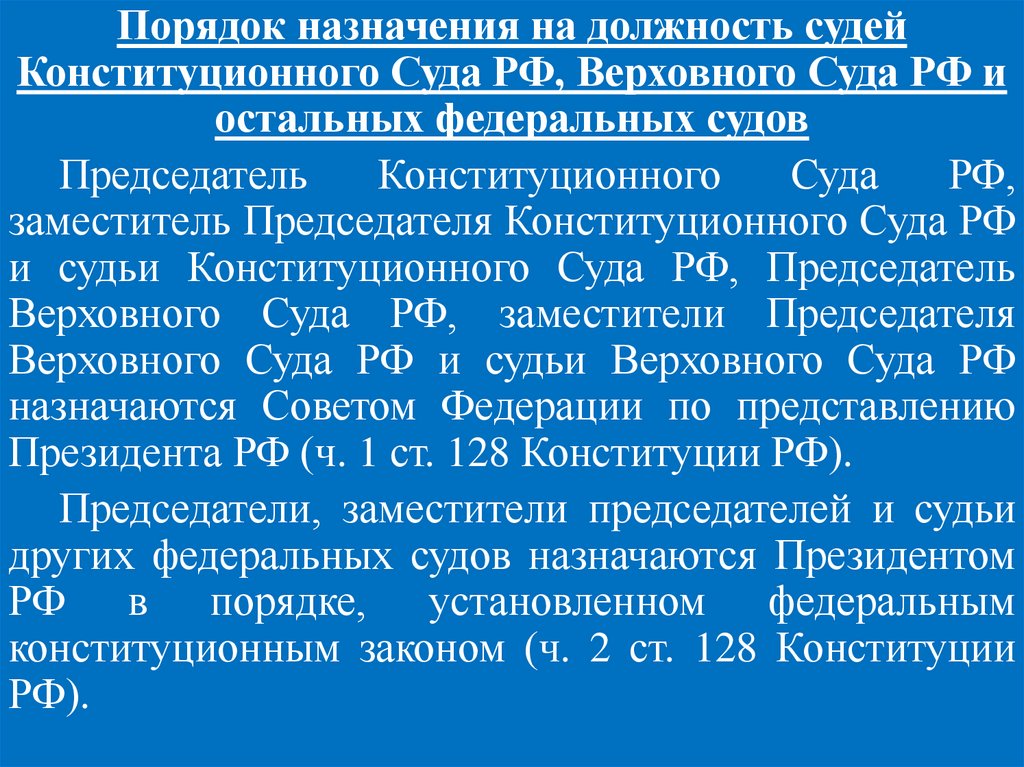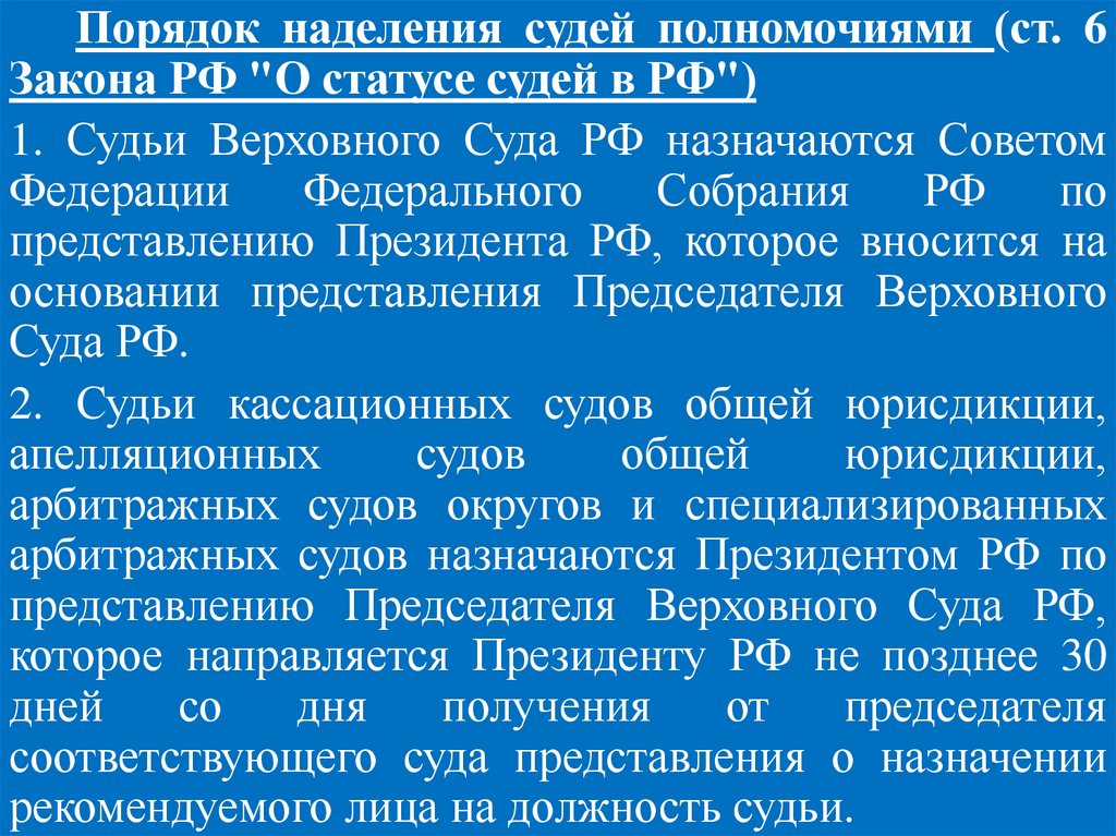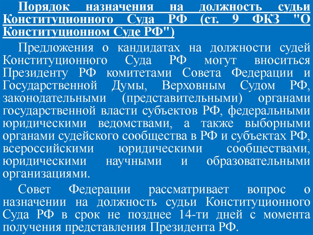 Федерации (ч. 2 ст. 129 Конституции РФ).