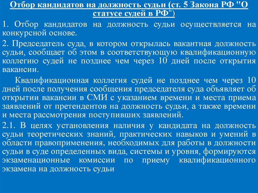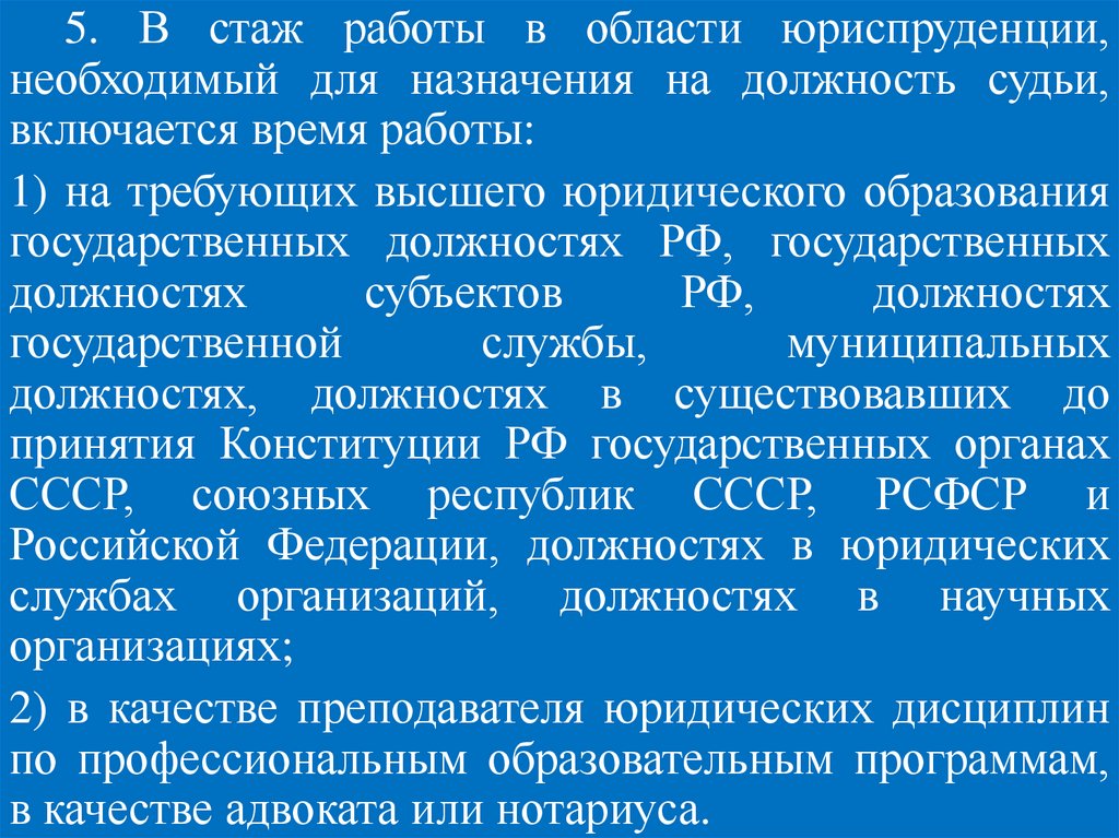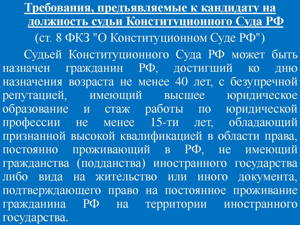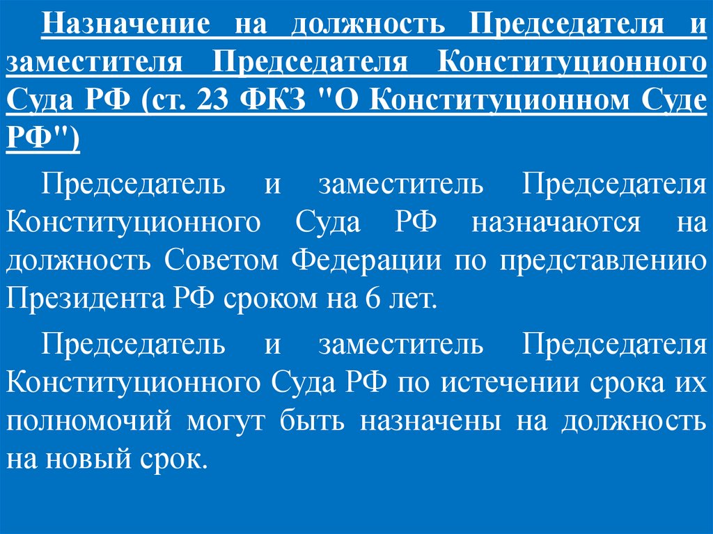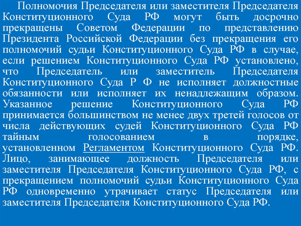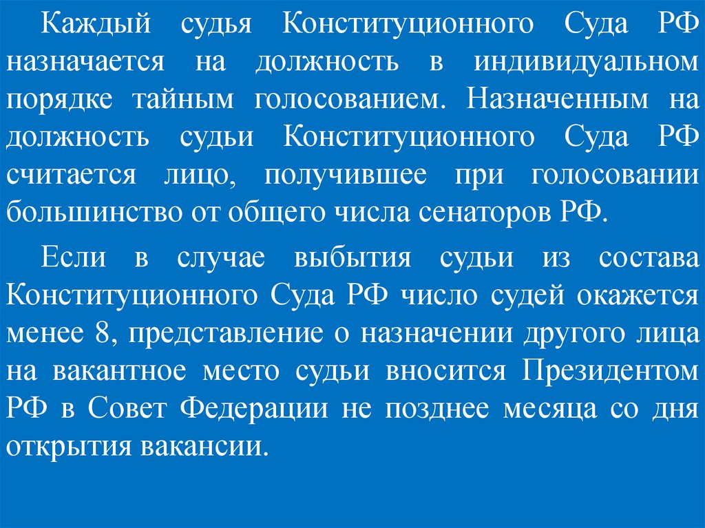 Федерации (ч. 2 ст. 129 Конституции РФ).