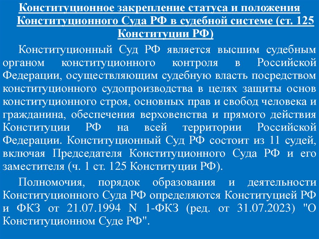 и федеральным конституционным законом. Судебную