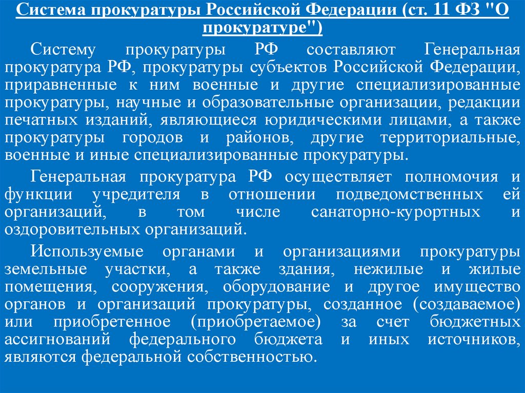 Система прокуратуры Российской Федерации (ст. 11 ФЗ "Опрокуратуре")
