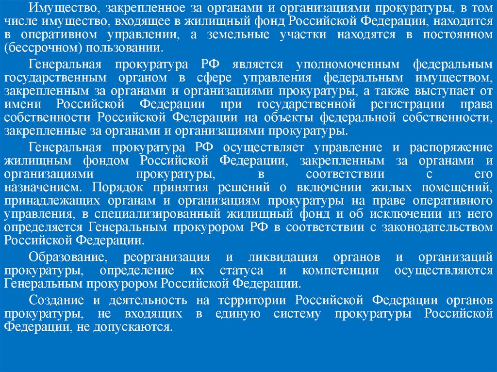 Генеральная прокуратура РФ осуществляет управление и распоряжение