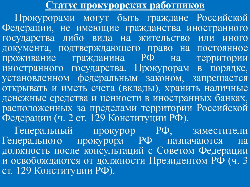 Статус прокурорских работниковПрокурорами могут быть граждане Российской