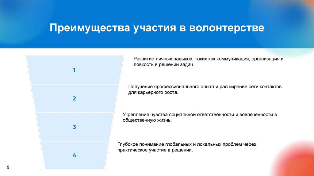 Преимущества участия в волонтерствеРазвитие личных навыков, таких как коммуникация, организация и