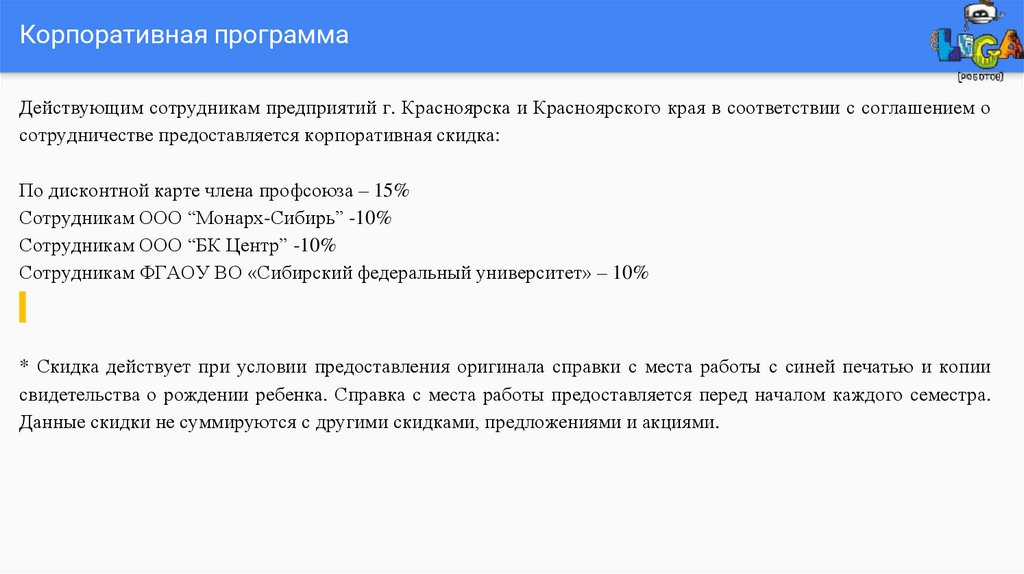 Корпоративная программаДействующим сотрудникам предприятий г. Красноярска и Красноярского края в соответствии с соглашением о
