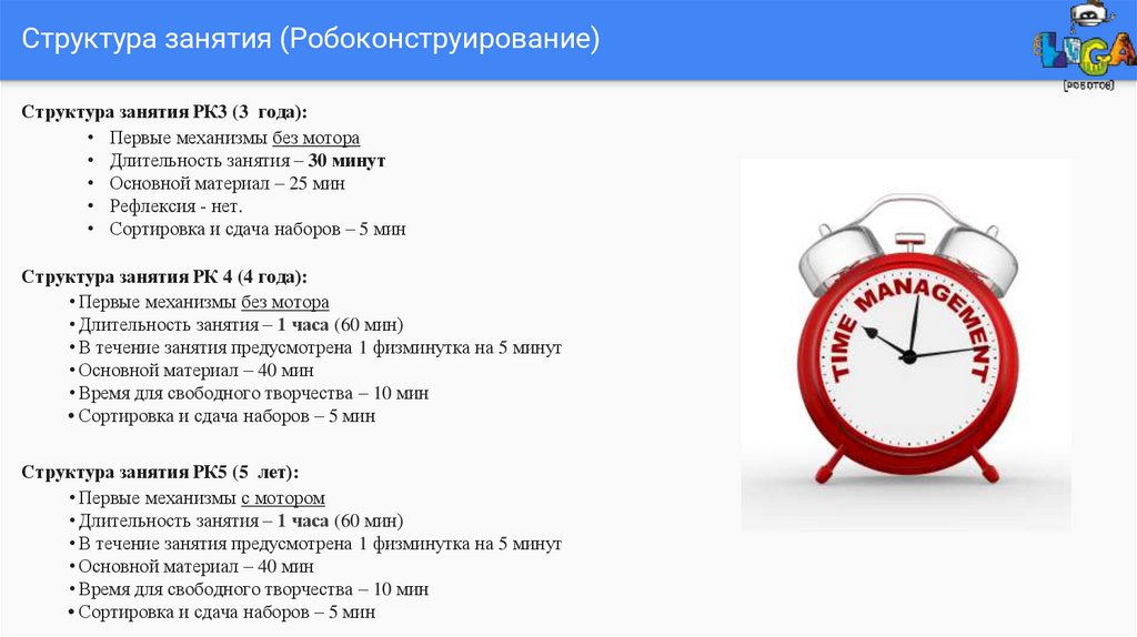 Структура занятия (Робоконструирование)Структура занятия РК3 (3 года):
