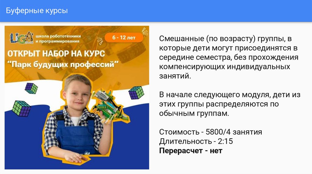 Лигой Роботов разработана отличная методика, которая охватывает детей дошкольного и школьного возраста от 5 до 17 лет.